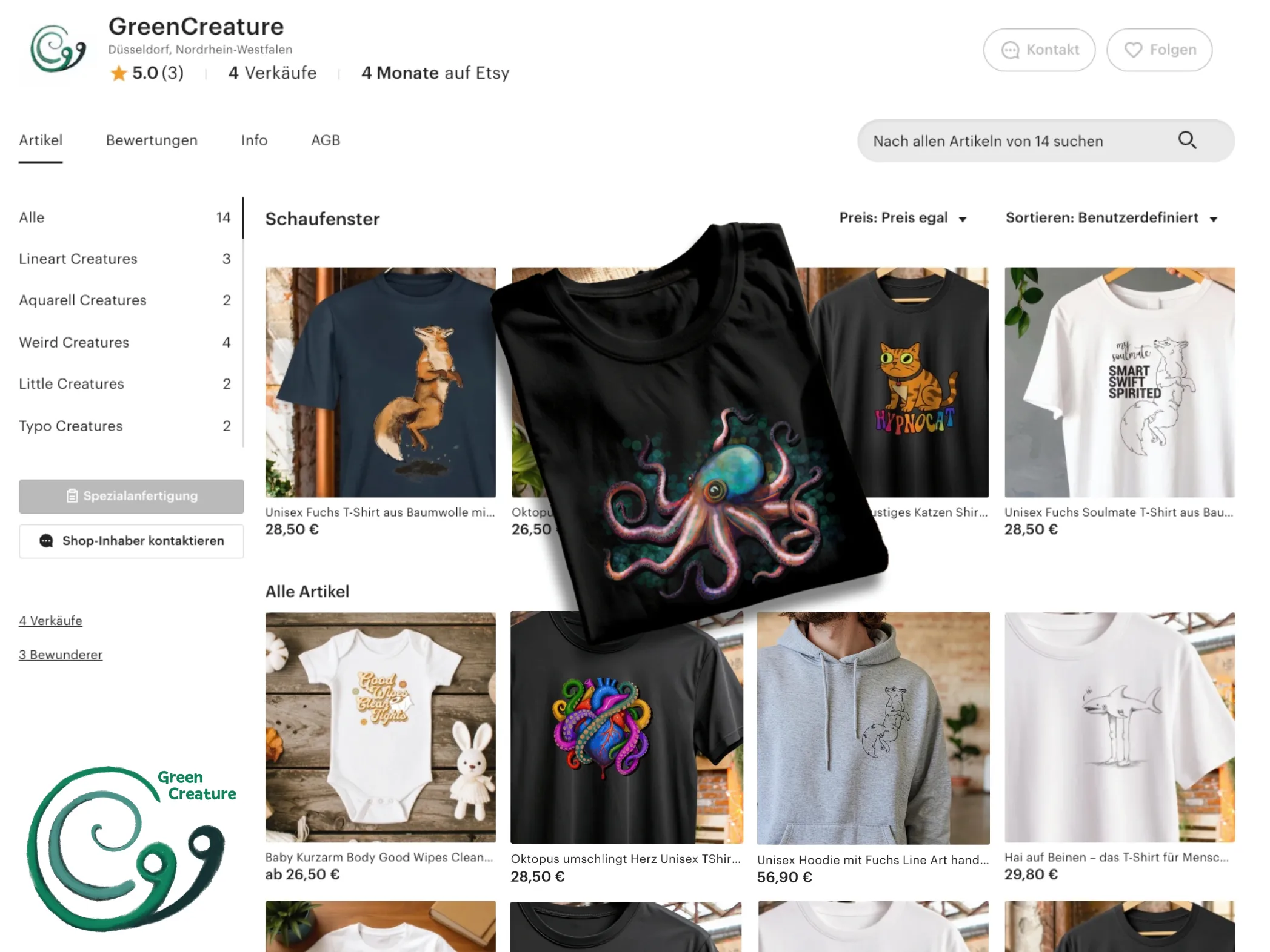 Zurzeit findet man Neues von mir bei Green Creature, dem Etsy Shop für nachhaltige, handgemachte Verrücktheiten oder ganz analog und oldschool bei DIY Werkstattarbeiten.